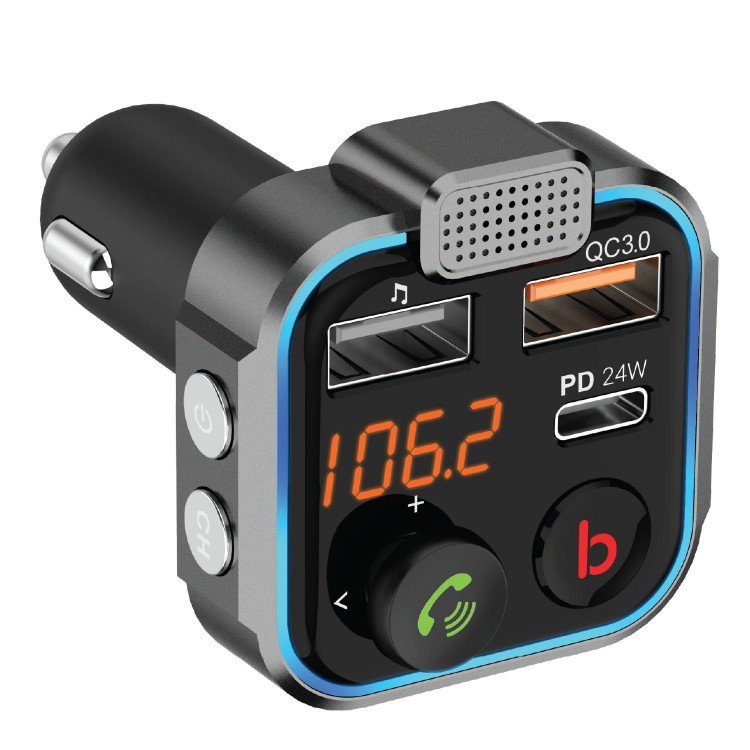 Porodo Smart Car Charger FM Transmitter With 24W PD Port and QC3.0 - Black