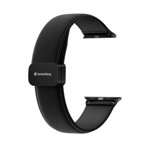 SwitchEasy Classic Genuine Leather Watch Band with Magnetic Lock for Apple Watch S4~S9 42/44/45/49mm-Black