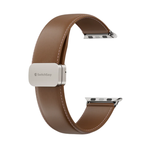 SwitchEasy Classic Genuine Leather Watch Band with Magnetic Lock for Apple Watch S4~S9 42/44/45/49mm-Brown
