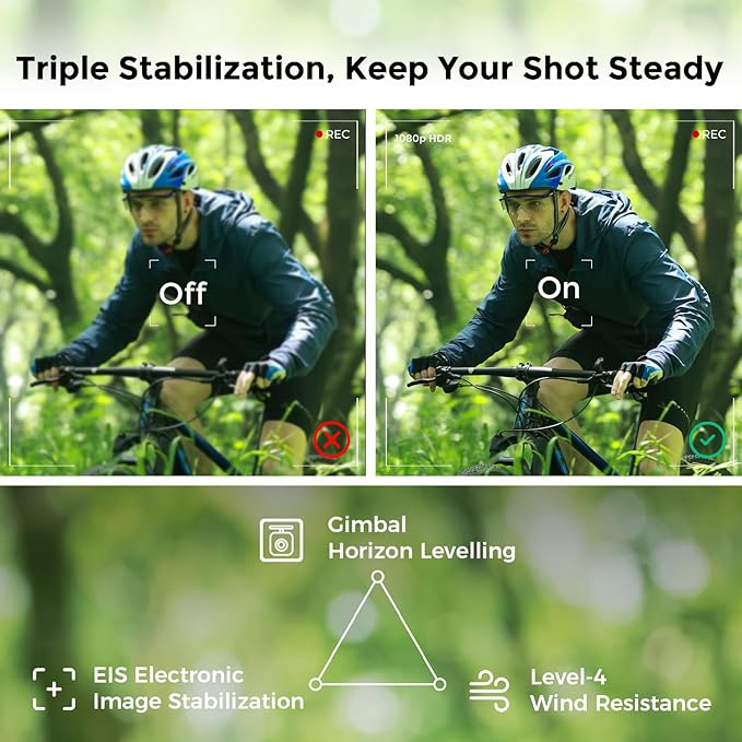 The triple stabilization system ensures smooth video effects and excellent fast motion capturing capability, easily recording beautiful moments during hikes or journeys.